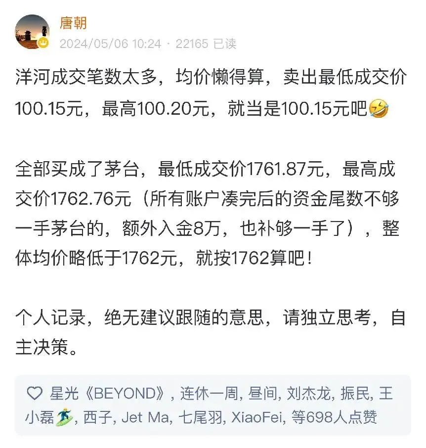 还真巧了,最近刚好也是这种心态泛滥的时刻。触发点当然是老唐的洋河上的认错和失败,引发许多苛求完美的朋友,颇多微词。
