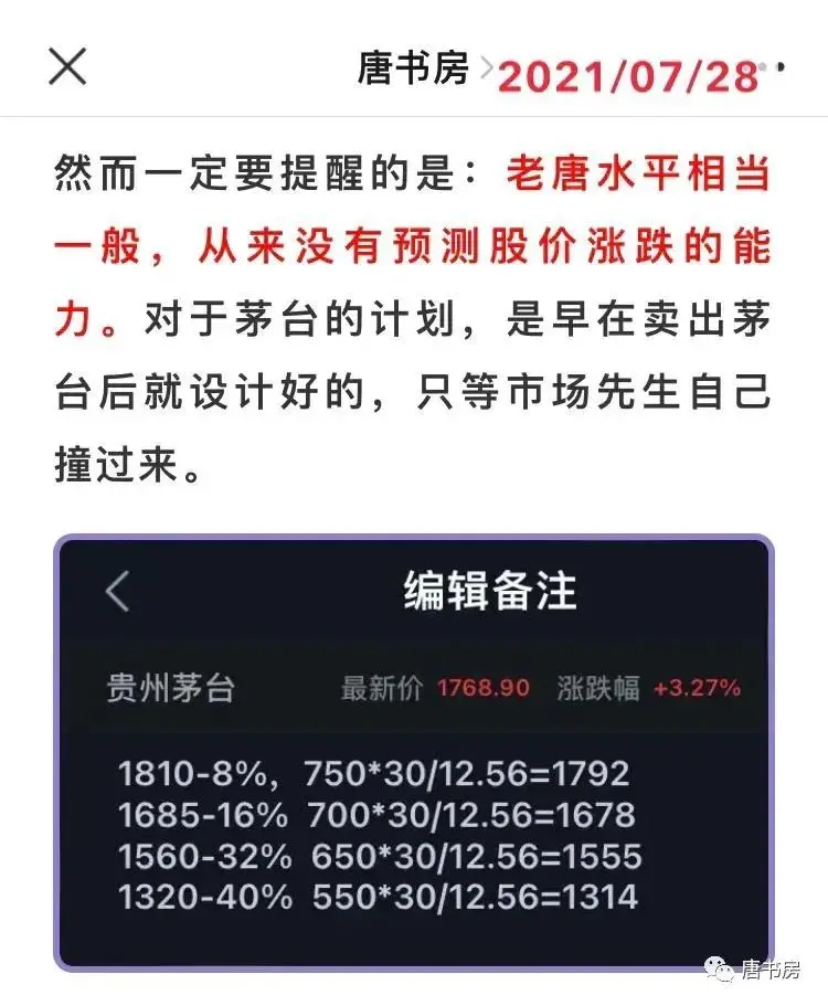 这只是我2021年在2600元附近卖出茅台后,就计划好并披露在书房的价格范围。