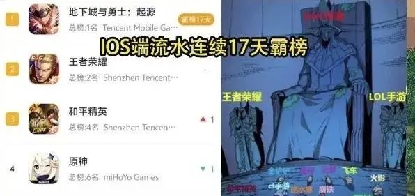 上线至今,一方面连续霸榜IOS平台流水榜第一名17天,和王者荣耀、和平精英两台印钞机一起,垄断了iOS平台流水榜前三;