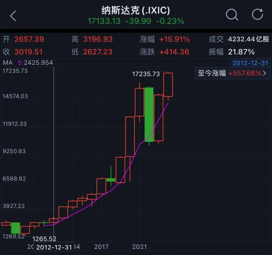 与之相伴的,是SP500和纳斯达克指数同步创出历史新高,其中纳斯达克指数的新高最让我心生感触。