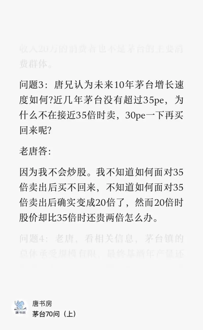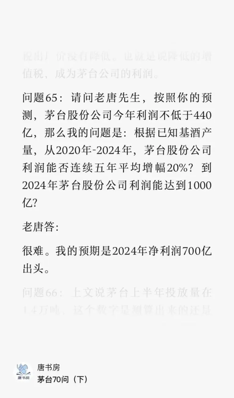 我当下非常确信2024年茅台的归母净利能完成875±10亿的计划,我也非常确信未来还会有增长,我还非常确信即使这个国家情况恶化,茅台这样的企业也会是死最晚的一批,所以我愉悦地持有,并开心地期盼下周三前能多跌一点。