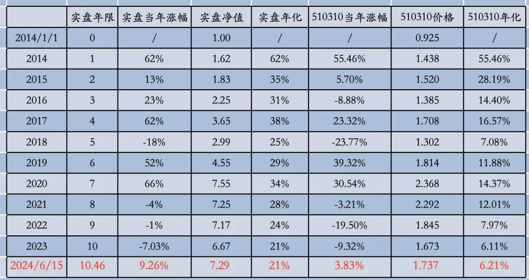 注:老唐实盘年度收益率,取「基金净值法收益率」和「资金加权收益率」二者之间的低值记录,均不含新股收益。