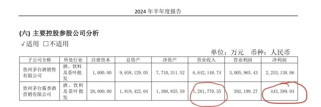 躺床上用手机简单看了一下茅台半年报: