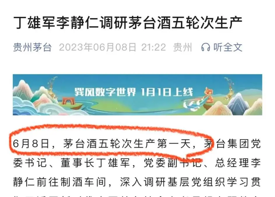 去年的五轮次酒,没有报道是哪天结束的,但报道过开始:2023年6月8日是五轮次第一天。