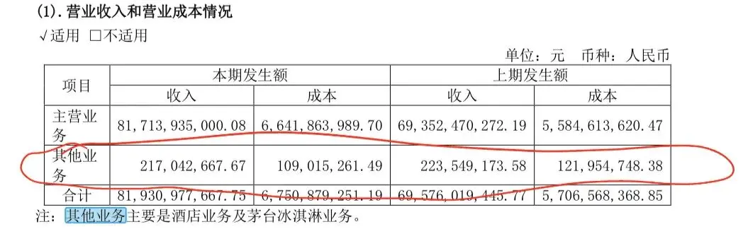 其他业务主要是茅台大酒店和冰淇淋业务。酒店的成本基本固定,不大可能发生什么突变。