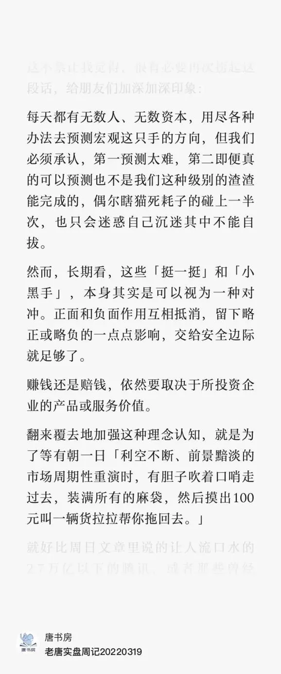 文中提及的任何个股或基金,都有腰斩的风险。请坚持独立思考,万万不可依赖老唐的判断或行为作出买卖决策。切记切记。