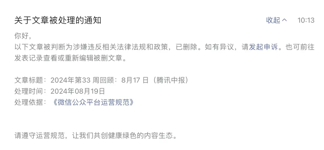 上午收到系统通知:前天(8月17日)的文章被删除。