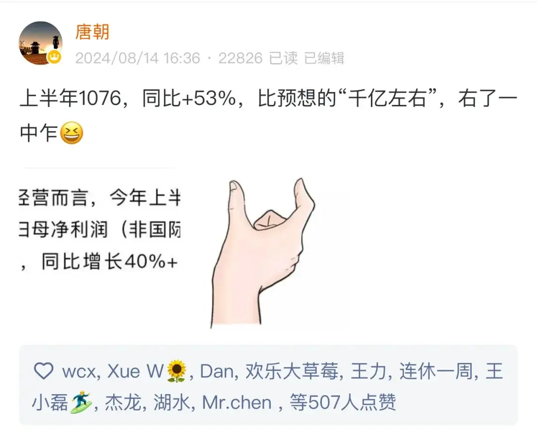 我第一时间看到这个数据后调侃说,比我预期的“千亿左右”,右了一中乍。