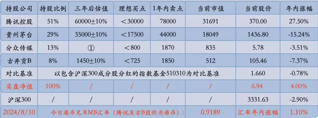 今天实盘净值6.95,持有腾讯的比例是51%,第一大持仓,持股数量是2019年末的四倍有余。