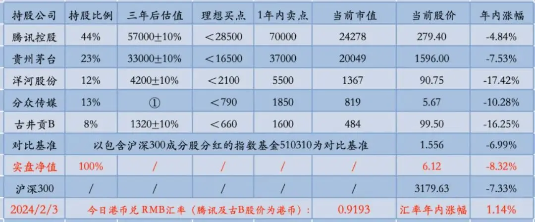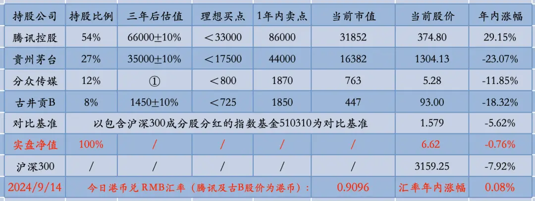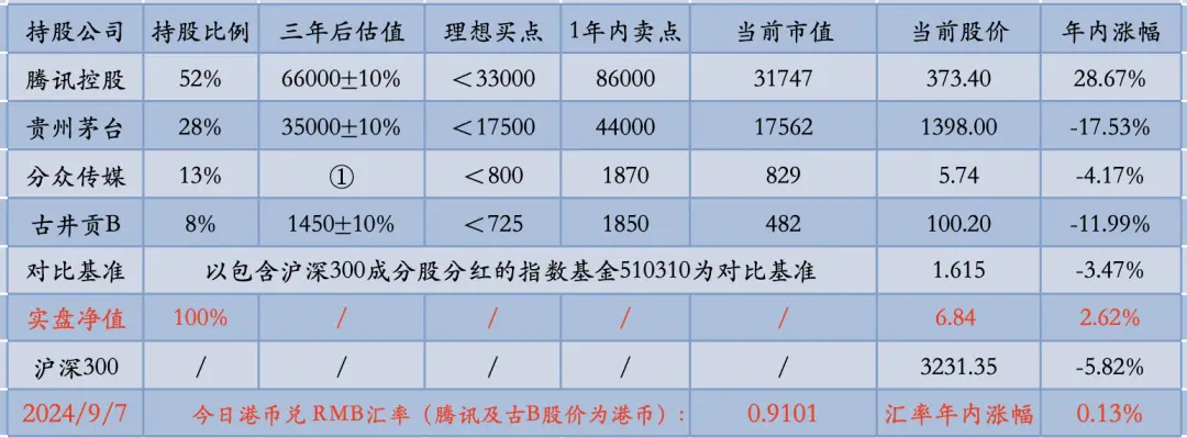 腾讯控股54%,贵州茅台27%,分众传媒12%,古井贡B8%。