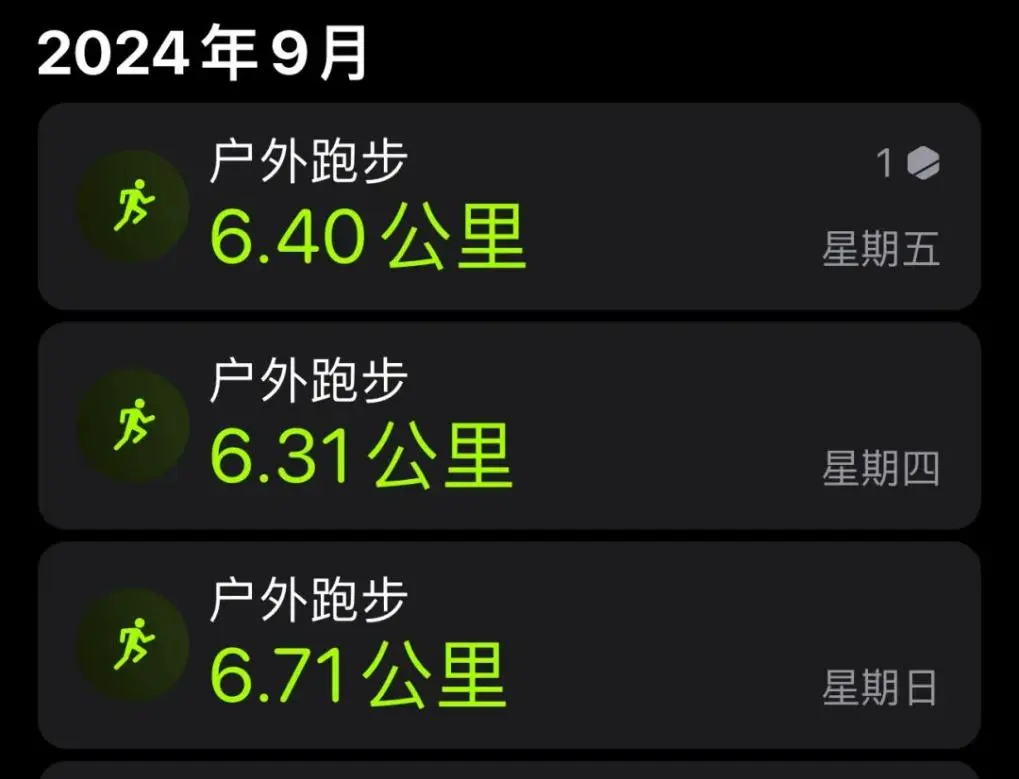 本周的早晚终于凉快下来了,当周跑步三次,单次六公里出头。