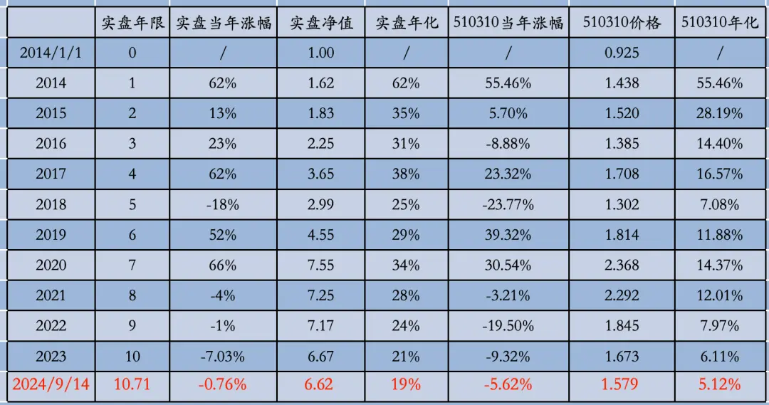 注:老唐实盘年度收益率,取「基金净值法收益率」和「资金加权收益率」二者之间的低值记录(自2022年9月起无新增资金,两个数据一致),均不含新股收益。