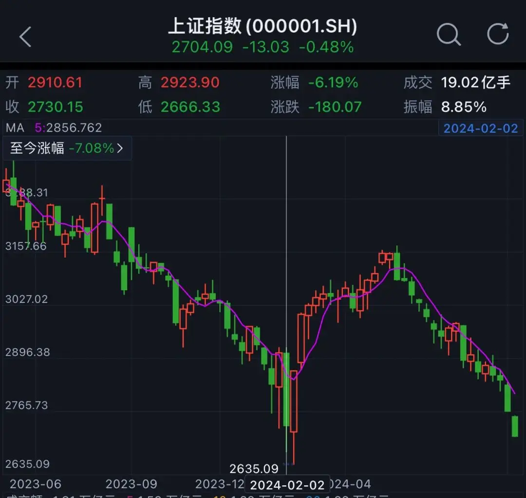 上周的旧报纸《别慌!短线2750点有支撑》没起到作用,这周2750点轻松告破,周末上证指数收在2704,当周下跌2.23%。