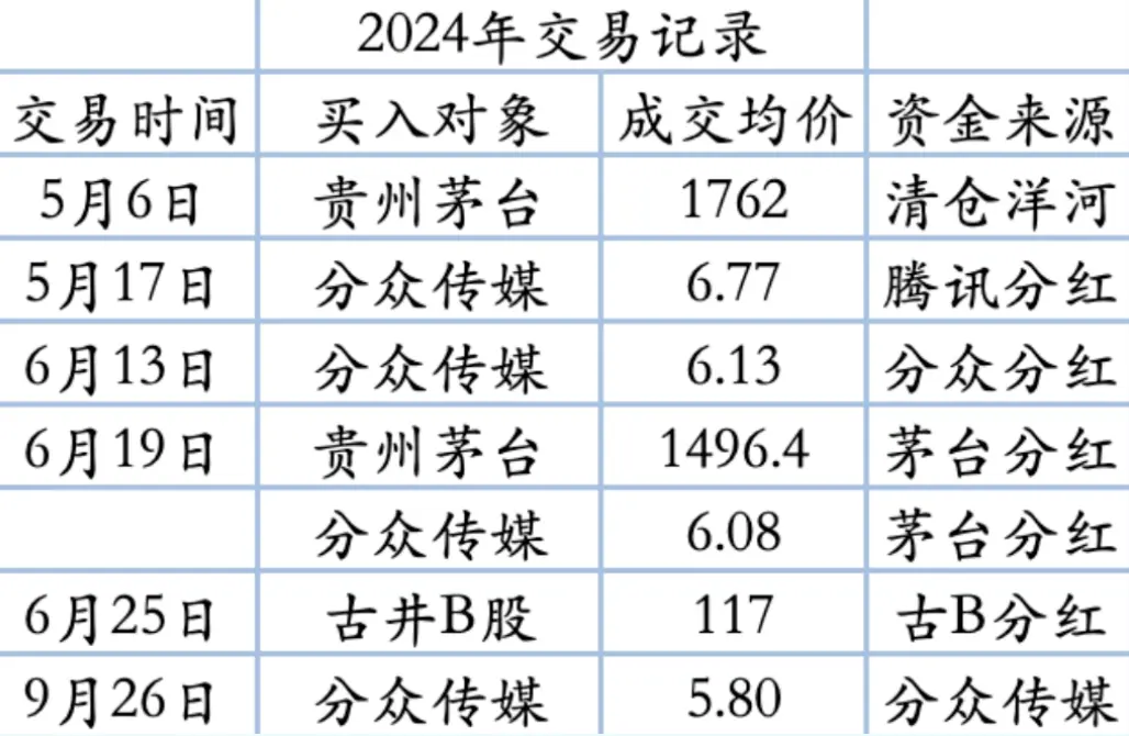 这是2024年内第六次交易。除5月6日洋河换茅台之外,其他五次均为分红再买入。