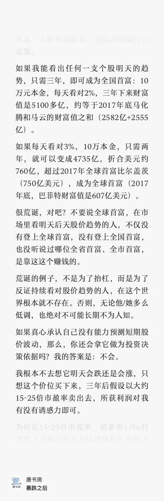 这也是老唐一再强调『如何看待市场波动』这门课,重要性要优先于『如何对企业估值』这门课的原因。