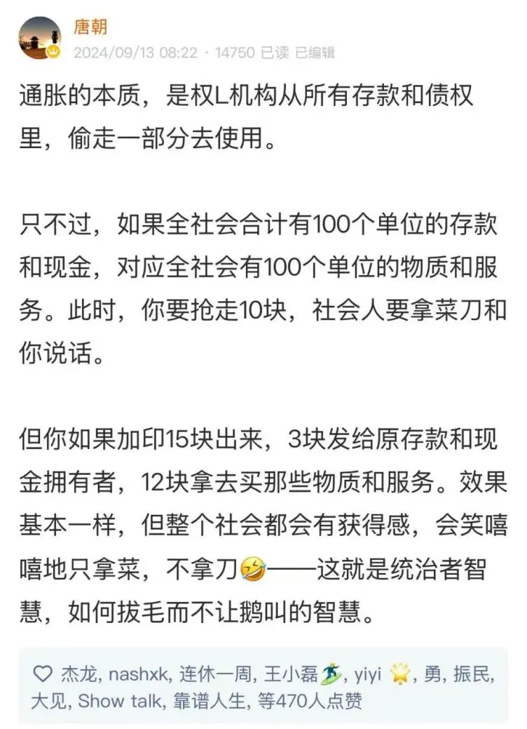 大放水的本质,是窃取债权人和持有类现金资产人士的购买力,并将其分发给债务人及持有其他资产的人士。