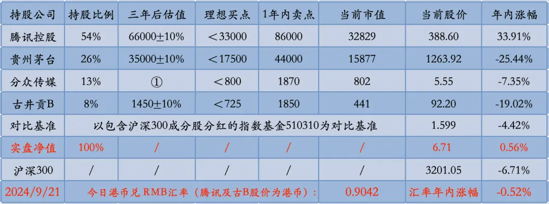 腾讯控股52%,贵州茅台28%,分众传媒13%,古井贡B7%。