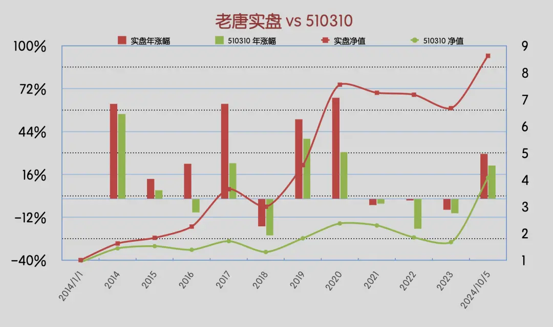2024年内,沪深300指数基金510310涨幅21.83%,老唐实盘净值涨幅29.31%。