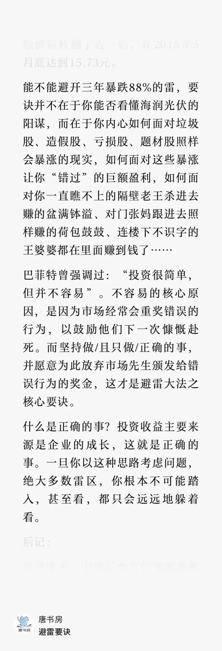 内心能真的理解这些只不过是请君入瓮的宣传费和饵料,自然也就不会为之心动了。否则,漫长的投资生涯里这种煎熬那可是少不了的。