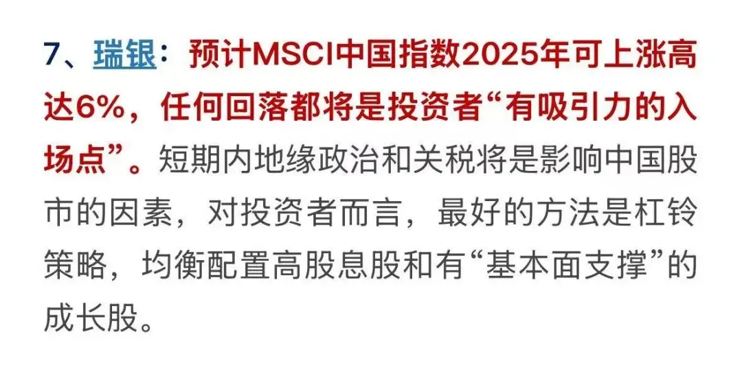 再说个搞笑的“居心”,这周著名国际投行瑞银发表了“看好”中国股市的研报,结论就是看好中国股市,预计2025年能上涨高达6%。
