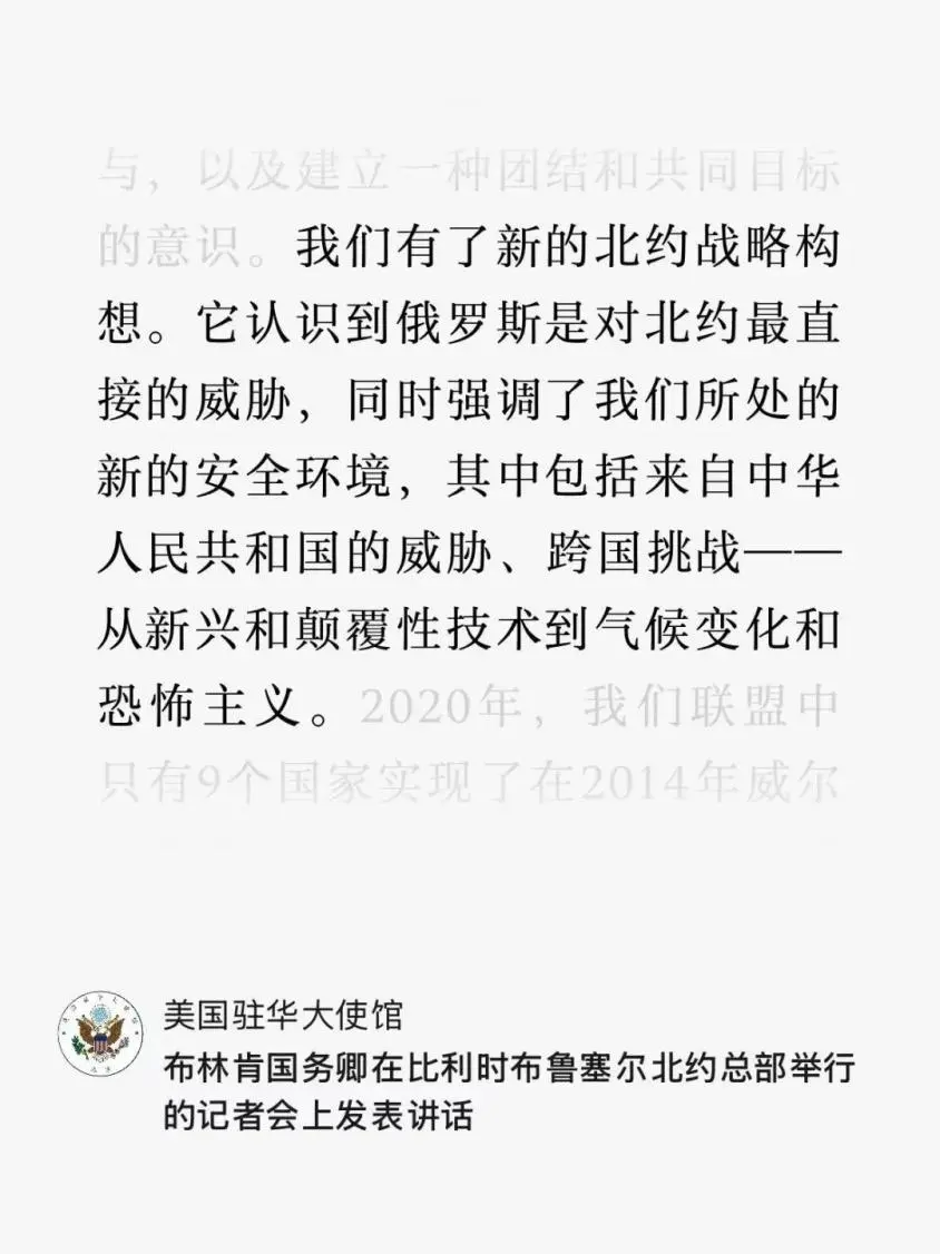 12月4日,美国国务卿布林肯参加北约部长级会议期间,在北约总部召开记者会,渲染来自中国的威胁。
