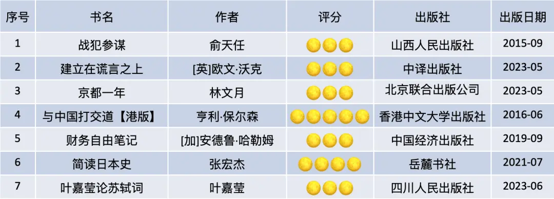 11月(含12月第一周)读书7本,书名及评价如下表。