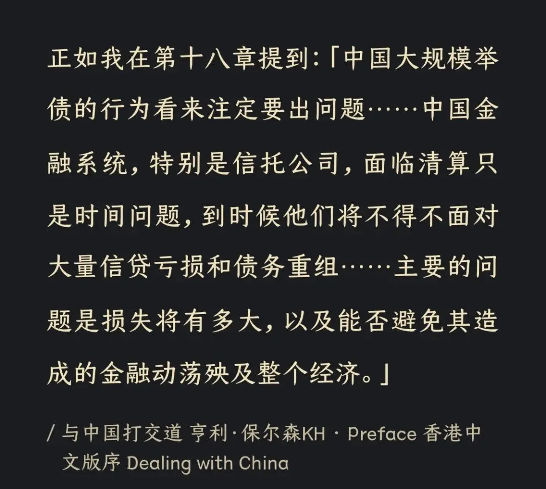 我持有几千万元的中国股票,当然也希望看到中国经济欣欣向荣,国家蒸蒸日上。但如果明明悲观,却要违心去说些乐观看法,或者将头埋入沙子,不看不听不说,我做不到。
