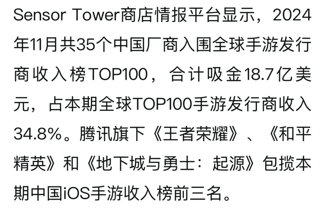 11月新上线的部分游戏反响也挺好,比如《宝可梦大集结》《群英风华录》、《航海王:壮志雄心》等。