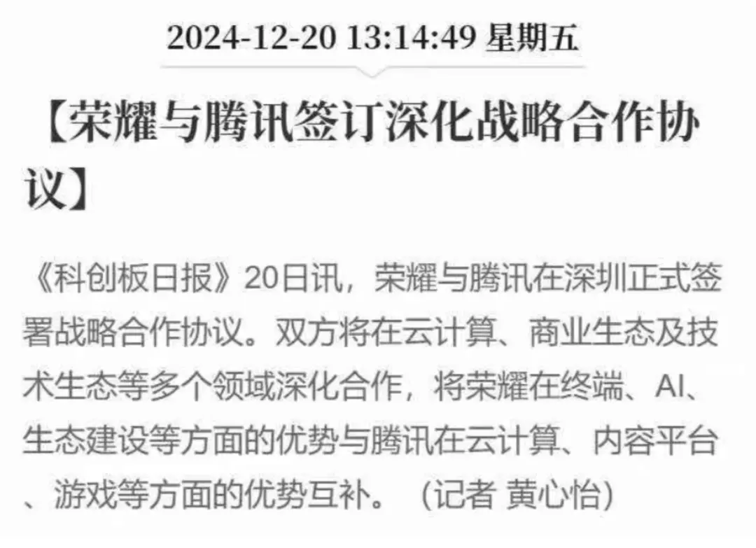 另外,这个和荣耀达成深化战略合作协议,也算一个值得记录的好消息吧。